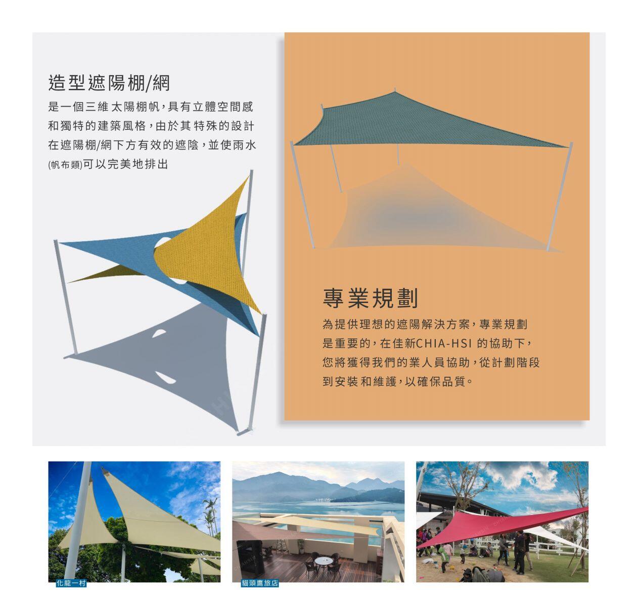 ◢ 面料 a. 帆布- 多彩龍PVC帆布/進口壓克力紗帆布 b. 網布- 彩色遮陽網 / 澳洲Gale建築遮陽膜∷提供多樣顏色選擇 面料選擇